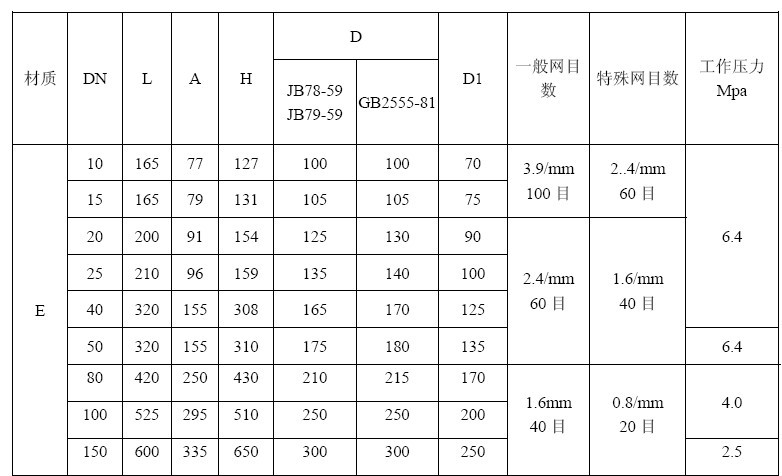 UG-A型過濾器尺寸圖