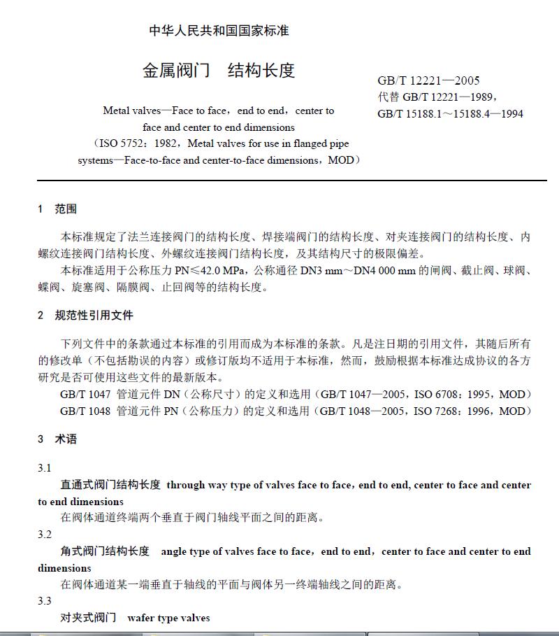 GB/T12221-2005閥門的結(jié)構(gòu)長度 PDF下載